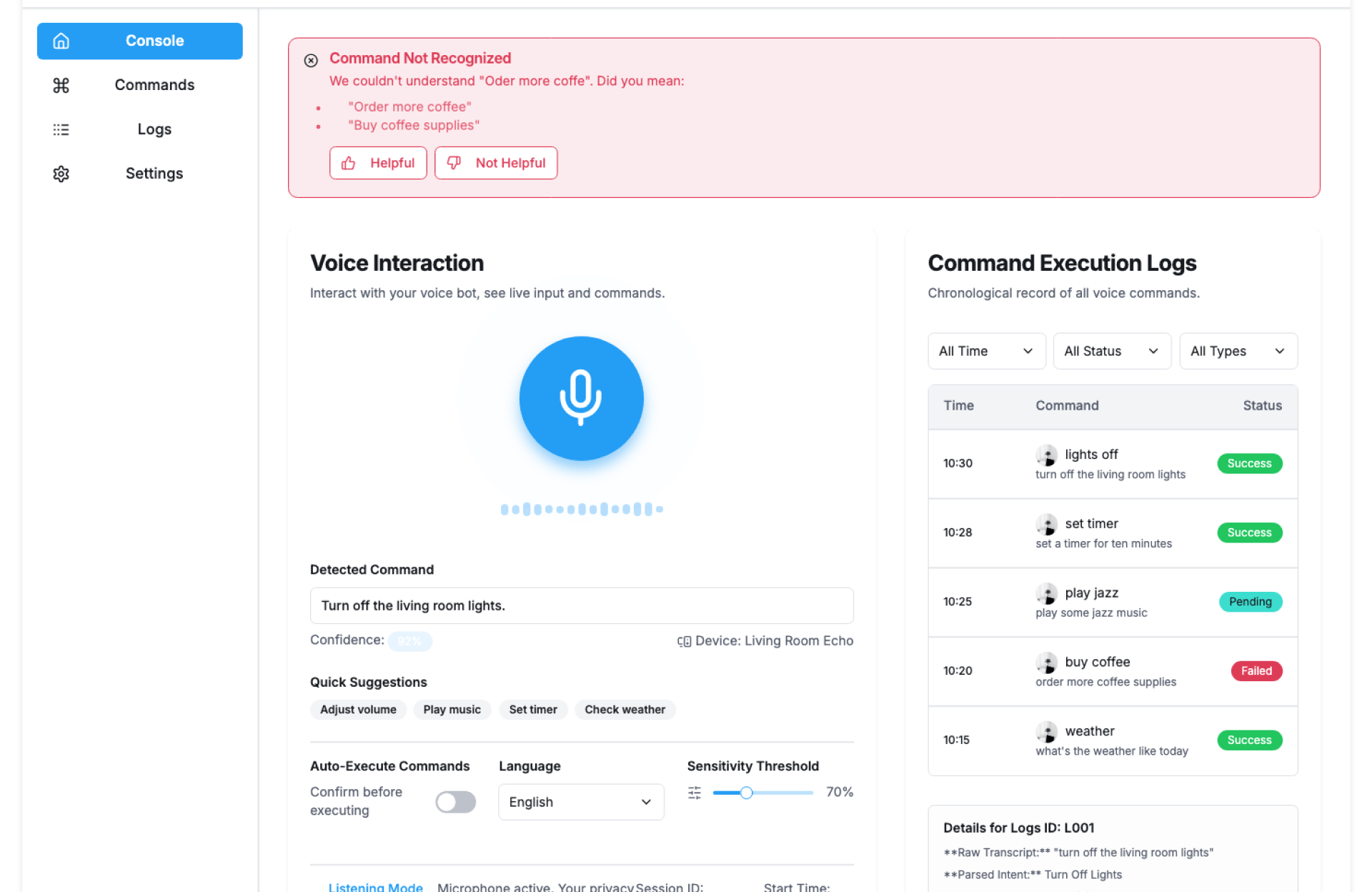 - Capture Voice Input – User speaks a command