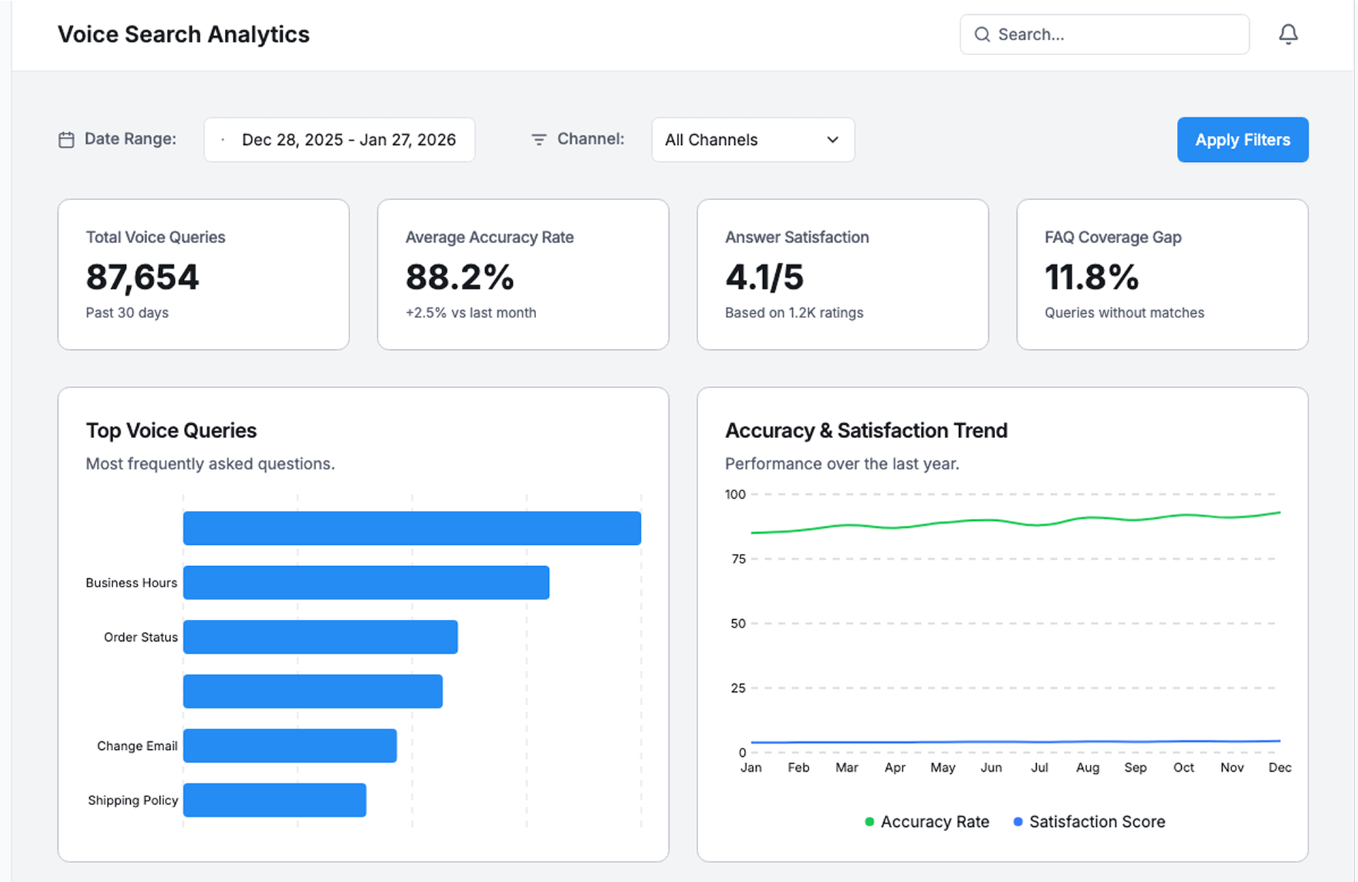 The Voice Search FAQ Bot is a ready-to-use assistant that listens to spoken questions, understands intent, and retrieves the most relevant FAQ answer. It works hands-free and can respond via voice or text, making support more intuitive and accessible.