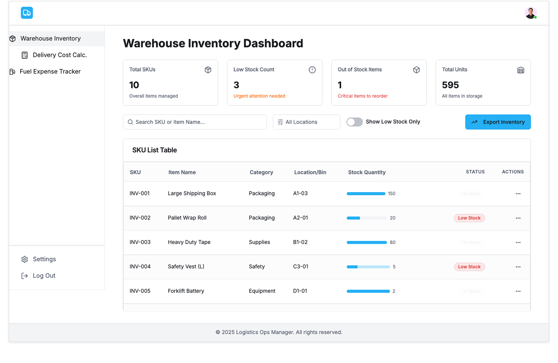 - Import Inventory Data – Upload SKUs, quantities, and locations