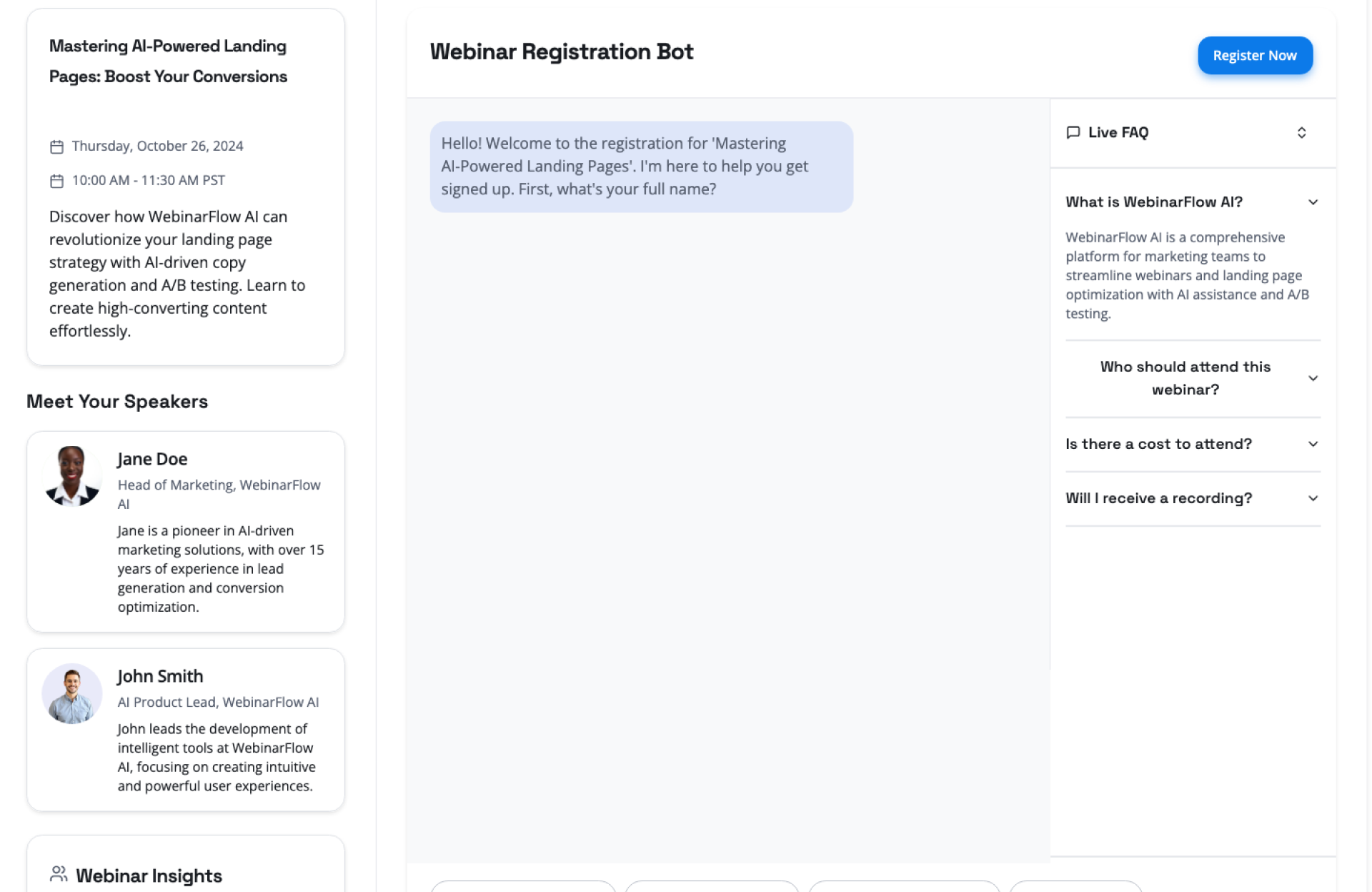 - Create Your Webinar Bot – Configure event details, date, and time