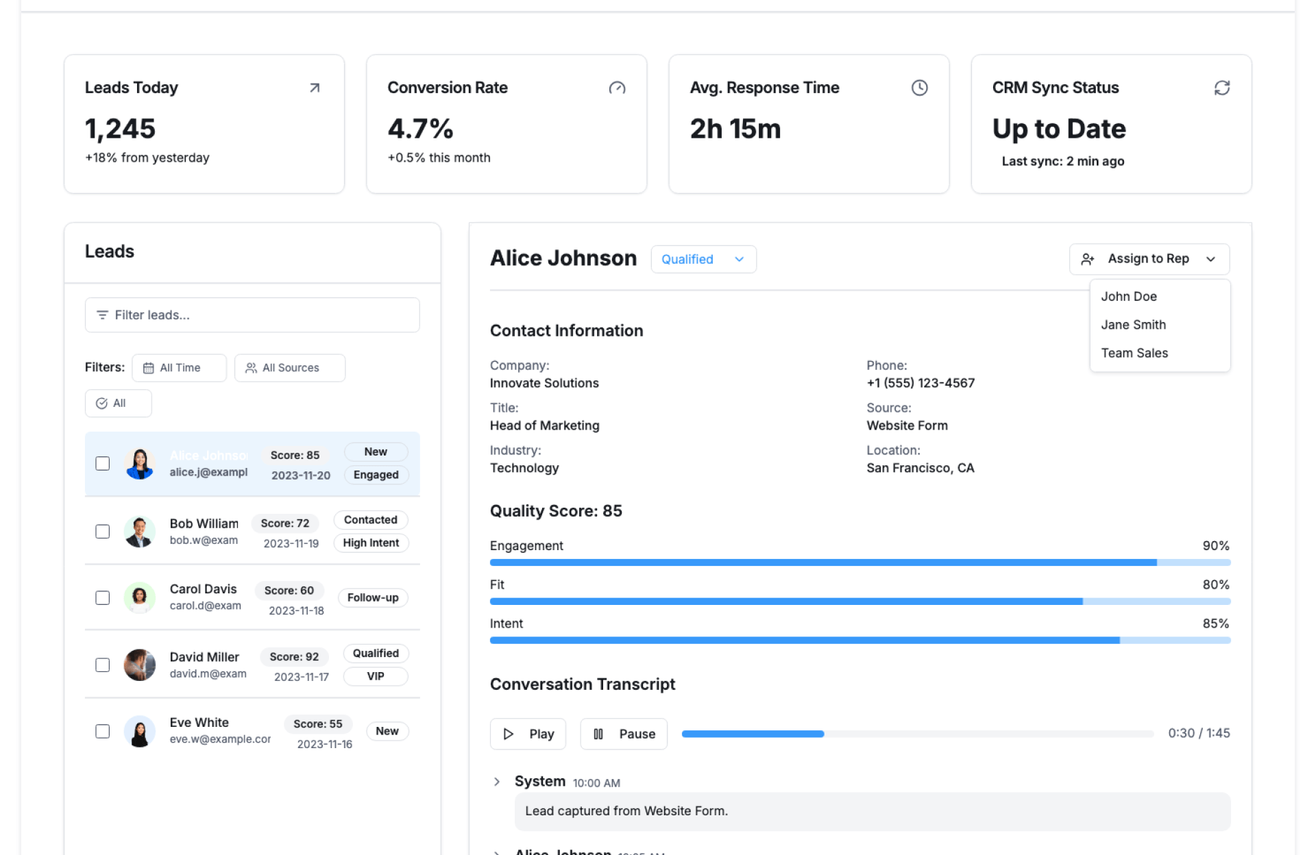 - Qualify Leads – AI sorts leads based on engagement and intent